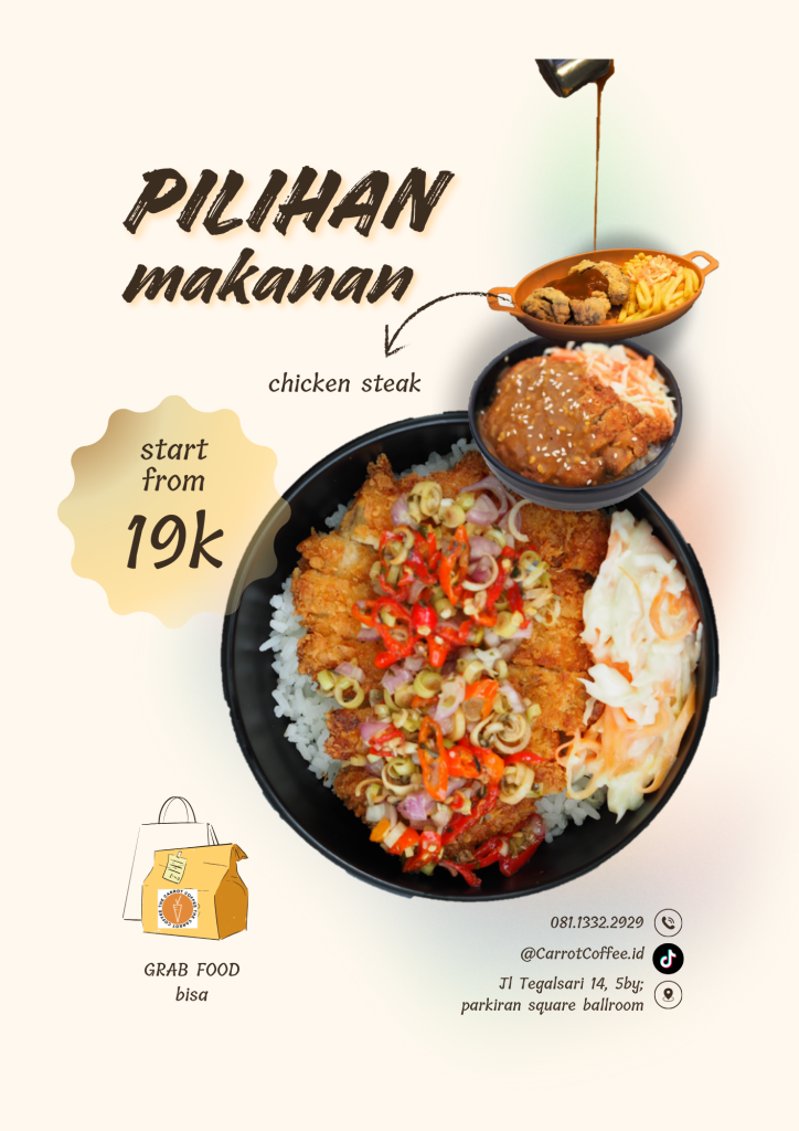 Cari tempat untuk ngumpul bareng temanmu? Ga perlu kuatir kalau ga cukup tempat duduk atau atau parkir nya… di Carrot Coffee loh amaaan!