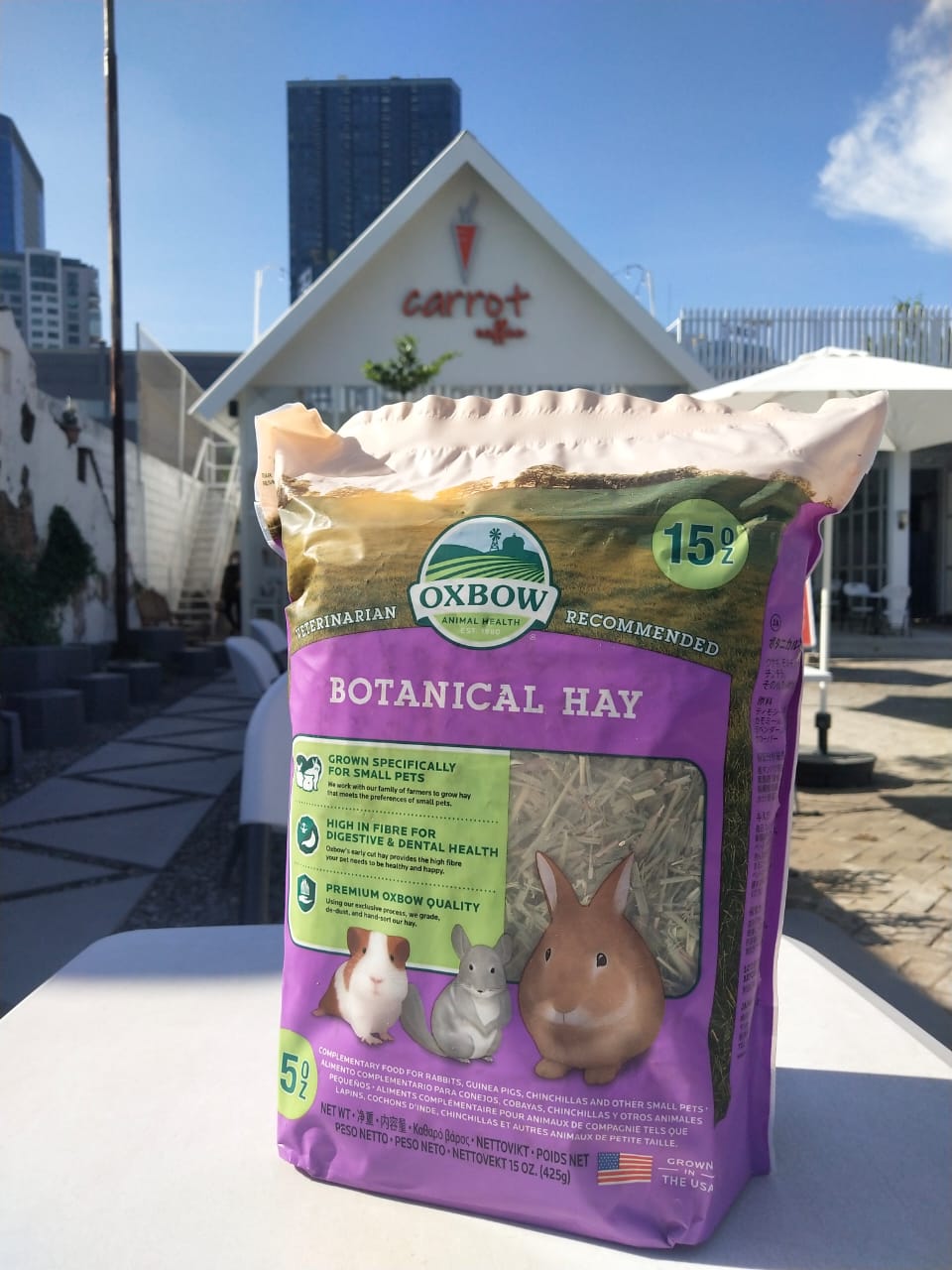 Makanan kelinci dan hewan kecil lainnya, berupa rumput kering Botanical Hay merk Oxbow. Produk USA. Asli, tanpa campuran, kemasan segel isi 425gr. Tinggi serat baik untuk pencernaan dan gigi teman kecilmu.