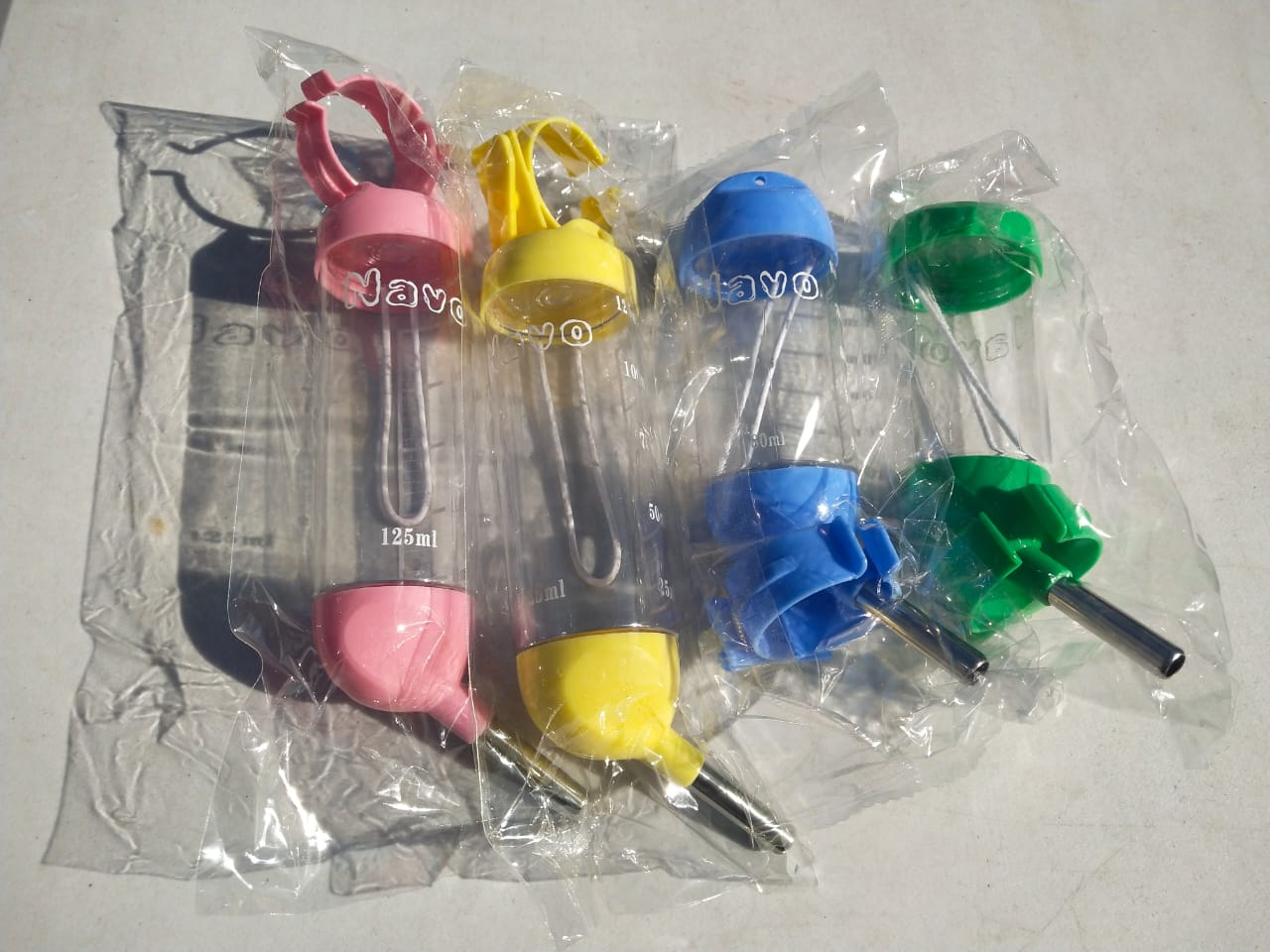 Botol minum dengan pilihan volume 80ml atau 120ml untuk di jepitkan di kandang.