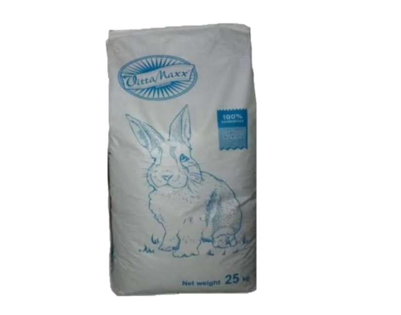 Makanan kering kelinci dewasa Vitamaxx. Ali, tanpa campuran, kemasan repack isi 800gr. (Kemasan asli 25kg).